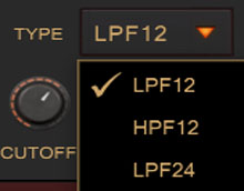 Using this dropdown, you can select the kind of filter, highpass or lowpass filter. A high pass filter allows any signal above the cutoff frequency to pass unaffected, whereas the low pass filter only allows signals below the cutoff frequency to pass through unaffected.