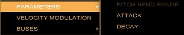 You can select one of the parameters in this dropdown. Parameter like Gain, Pan, Bow frequency, Pitch fluctuation.